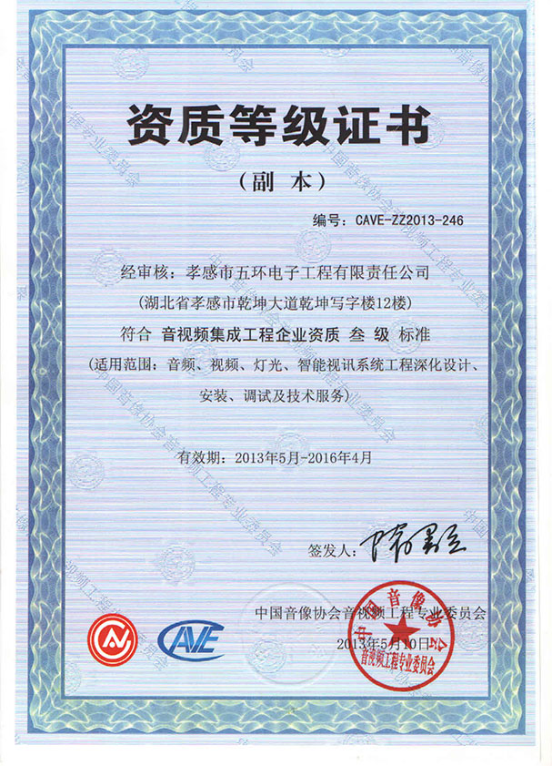 音視頻資質(zhì)等級(jí)證書(2013)